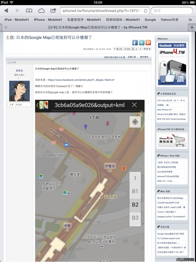 pc2578 wrote:感謝各位的回應New iPad 買來時裡面軟體就有內建:Google Maps當時 iOS 5.1 版本有內建:Google maps女王的iPad Mini 買來時.內裝 iOS 6.0版本iOS 6.0 時、不知為何就沒了 Google Maps???...(恕刪) 因為 apple 與 google 的合約到了,apple 要求若要續約,則google 必須把一些android 的 google map 獨有的功能也放上apple 版本,而google 不肯。於是,雙方破局。