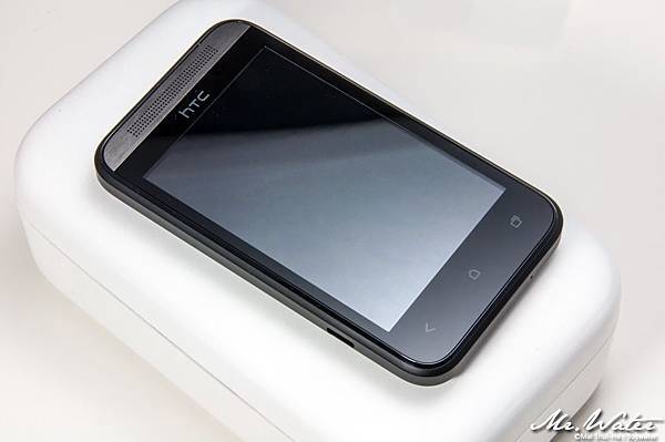 ▼拆開手機保護膜後,即可看見本次的主角hTC Desire 200 (102e),黑的實在太有質感了!