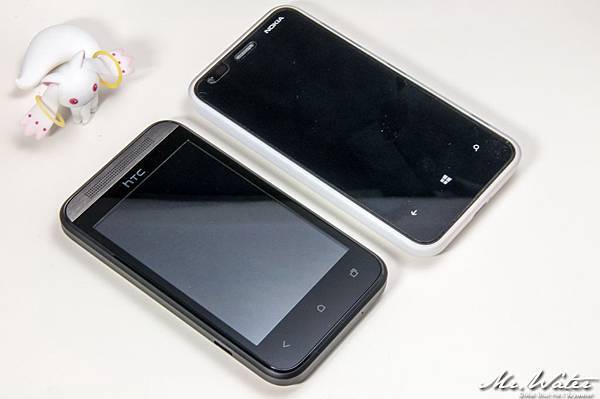 ▼hTC Desire 200 與 NOKIA Lumia 620 黑白雙煞兩隻入門手機。