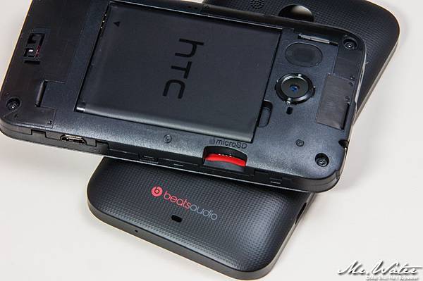 ▼在這邊可以看見hTC Desire 200背後下方有個類似T字型孔位,這即為手機吊飾孔。