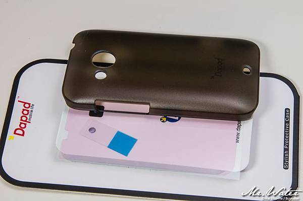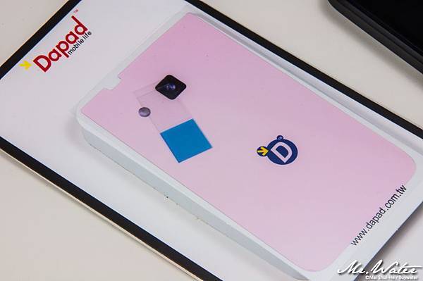 ▼保護貼還附贈一小塊擦拭絨布,保護殼背面印有Dapad的LOGO。