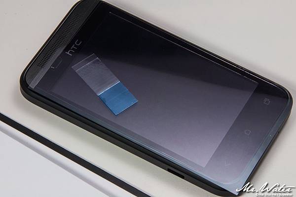 ▼hTC Desire 200 (102e)手機本體上,外層有先套上一層保護膜。