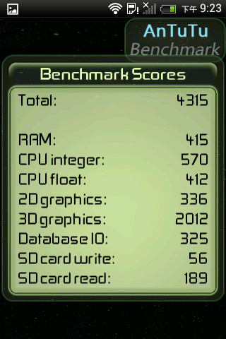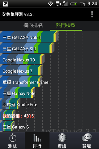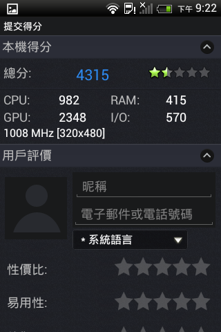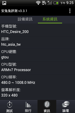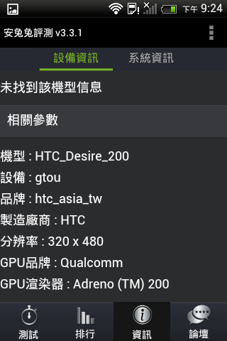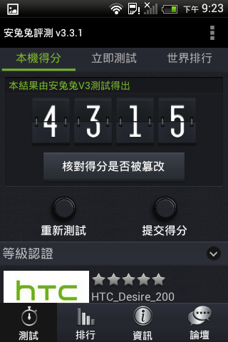 ▼hTC Desire 200 安兔兔評測獲得4315分的成績。