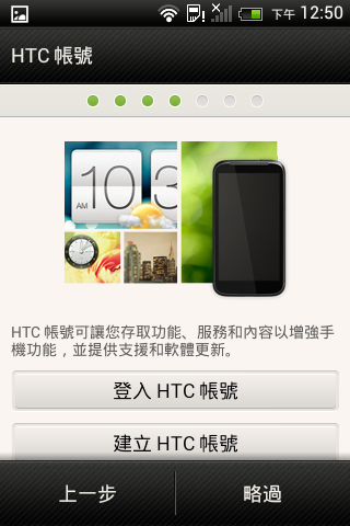 ▼設定HTC帳號,如尚未建立者可利用此步驟鍵立新帳號。