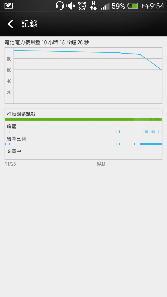 彎道情人 wrote:樓主的電量用了21小...(恕刪) 大大您的GPS長時開啟,還能撐接近3天才到18%,根本超強 以我用省電模式的經驗,訊號好的地方開3G待機就很省,訊號不好而開WiFi的話可以更省!其實也沒啥應用可以讓我開一般模式(FB、Line、照相、看照片、看BlinkFeed,CPU loading超低)遊戲都交給iPad,所以我的New One超浪費那四核心的