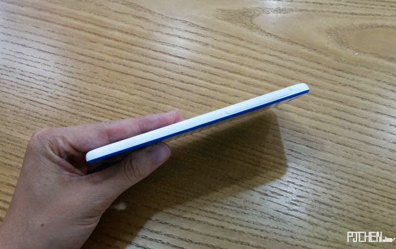 主鏡頭這次變大了,畫素一樣維持在1300萬畫素。另外,原先有些擔心外圍那藍色的圈圈是不是會使的手機無法平放在桌面上,但實際測試的結果,雖然目測的確有高出來一些,但瓶放在桌面時並不會因為不平而晃動。
