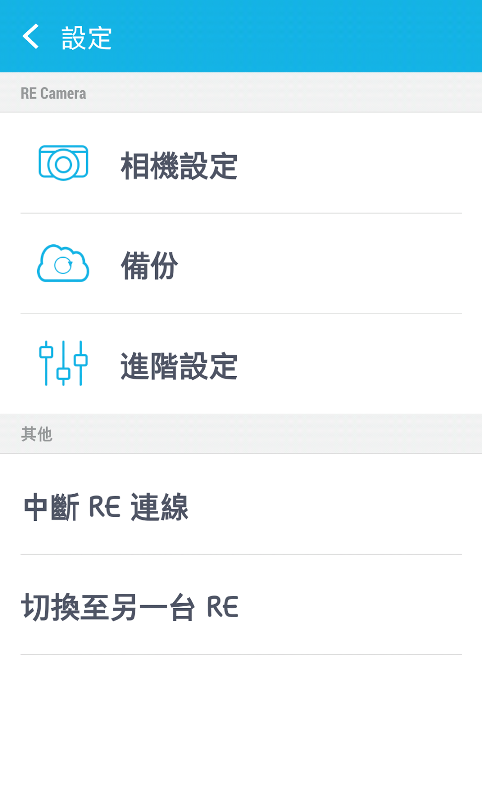 而其他RE的操控和設置,除了拍照和錄影可以直接透過RE上面的按鍵操作之外,其他的設定都要透過RE的APP才能設置