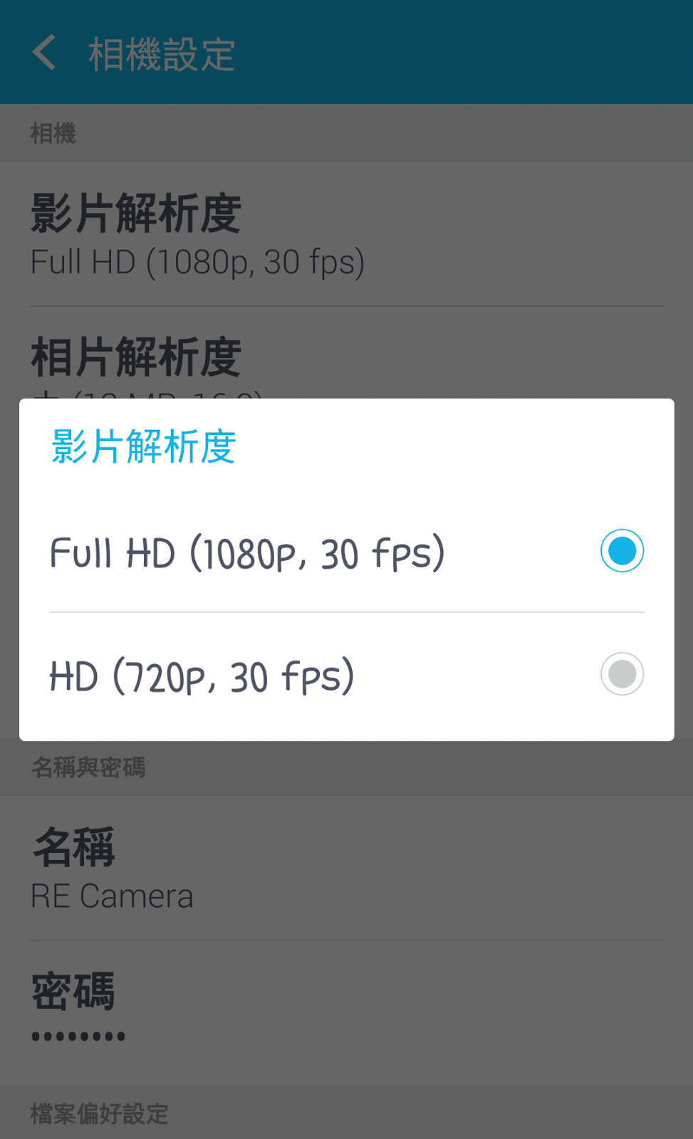 可以設定錄影解析度,總共可以錄製Full HD和HD兩種格式