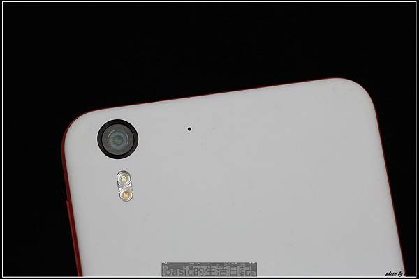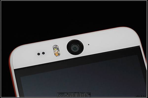 正面的大眼睛就是它的特色 , 不只有1300萬畫素自動對焦鏡頭 , 旁邊還有雙色LED閃燈 , 在自拍時可以補光用..