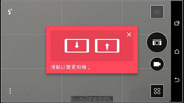 在取景畫面上滑動畫面可以切換前後相機..