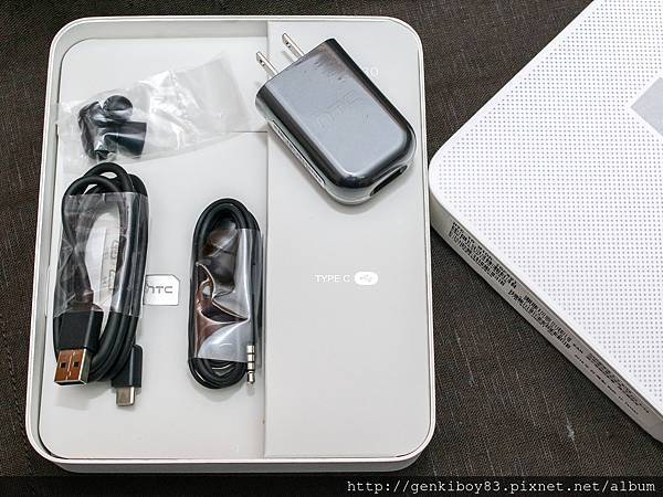 HTC10包裝內容物一覽,TYPE-C充電線、QC3.0充電器、Hi-Res耳機,還有一個小小的退卡針