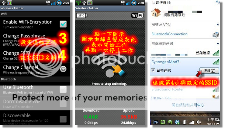 2.Wifi AP 模式設定完成後返回3G 手機熱點在勾選開啟即可。開啟此應用程式將明顯影響到電池使用間,建議可插充電器使用。
