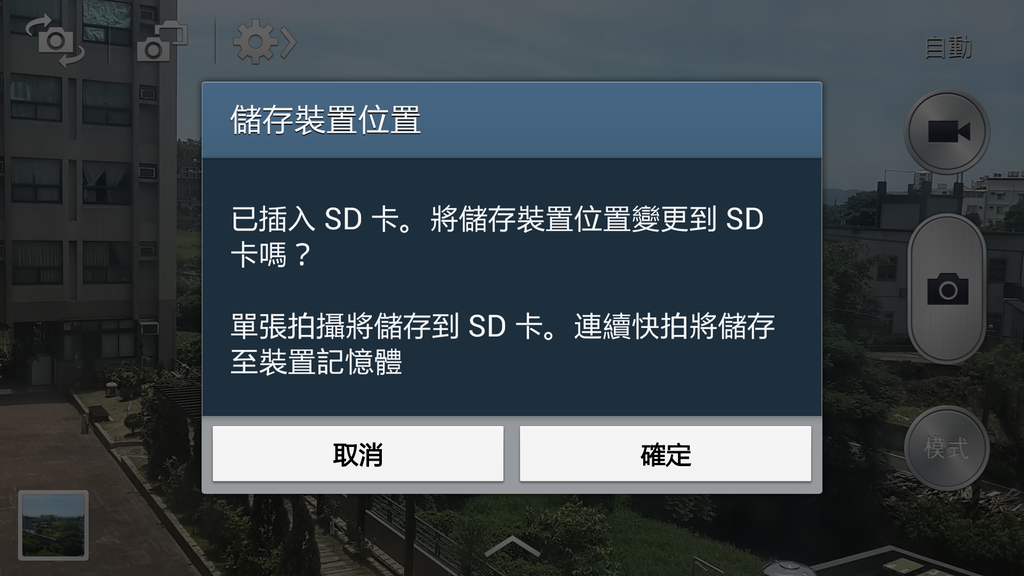 上圖是S4的照相機在偵測到記憶卡時跳出的訊息...這種設計相當方便;
