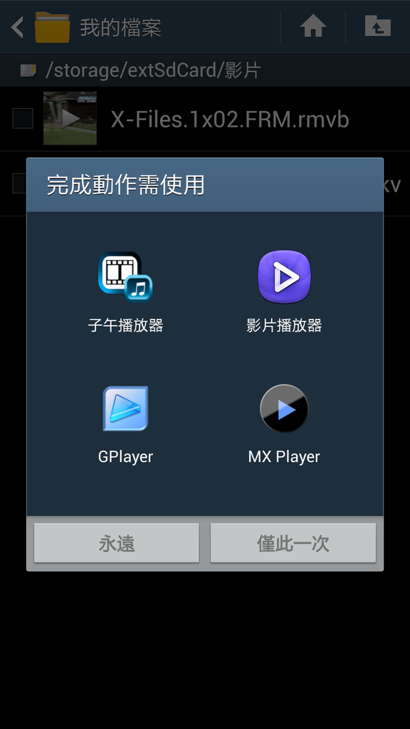 當你點下RMVB和MKV檔他會跳出關連的APP如上圖,不再束手無策。