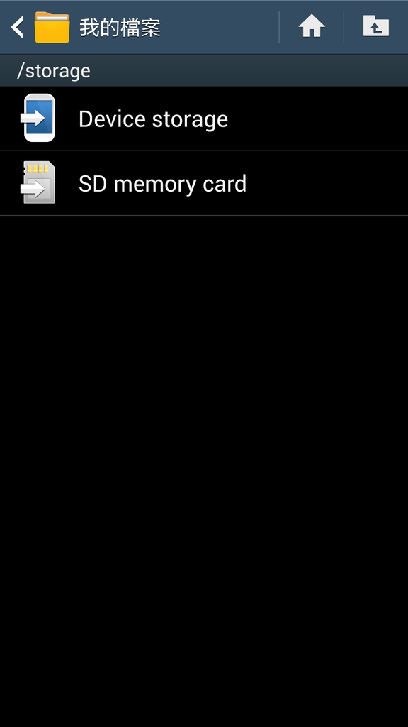 上圖是S4內建檔案總管的最頂層目錄,裝置還是外接記憶卡一目了然。