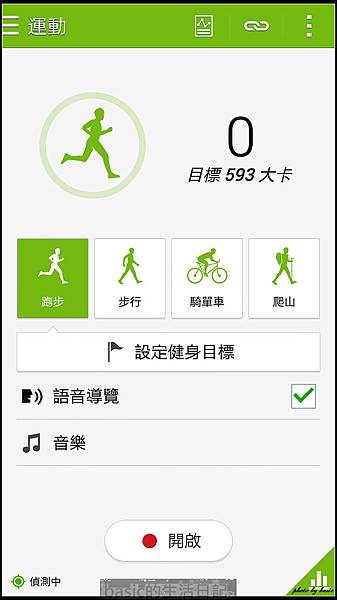 在健身目標上可以設定今天要跑步 , 步行 , 騎單車 , 爬山多遠