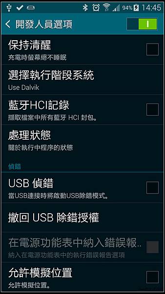 跳出來外面 , 可看到多了開發者選項..再進去開法者選項後可看到這個畫面