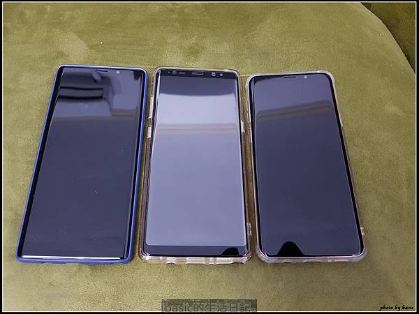 三兄弟來比一比..(Note9 , Note8 , S9+)S9+是最短的一支(Note8正面螢幕顏色偏白是因為有貼玻璃貼的關係)