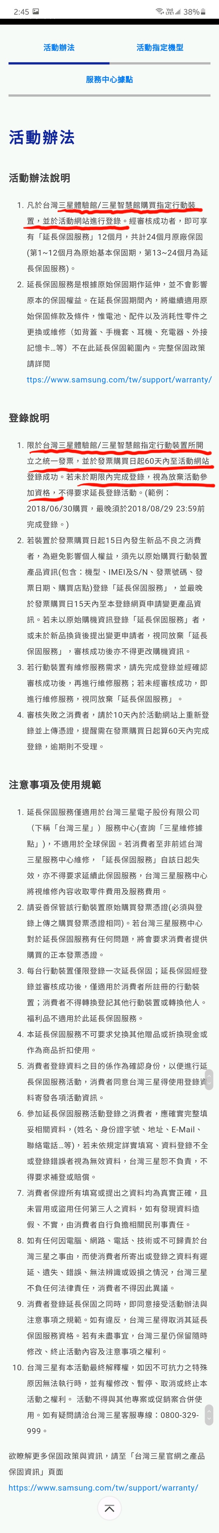 lovecherles wrote:昨天才去三星門市問a71...(恕刪) 延長保固機型請參考截圖,另外僅限三星智慧館/三星商城開立發票,於指定期間內上網登錄並上傳發票,審核通過方可享有「延長保固一年」