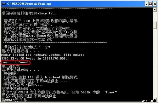 N大的影片中跑了一堆寫入資料畫面,但我卻變成tar:nor found(如圖)