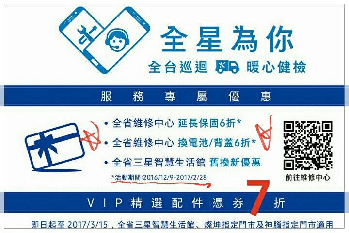 jemyeh516 wrote:Note 4 電池從...(恕刪) 這回三星的健診活動似乎是為你量身訂製...^.*換電池與背蓋竟然有6折!我想這對可替換電池的手機,例如Note4,應該是一個好消息。我七月份在樂聲戲院旁的三星維修站添購2顆電池時,沒有任何優惠。