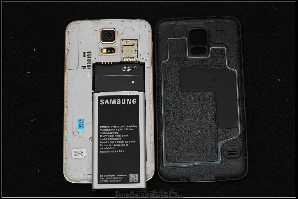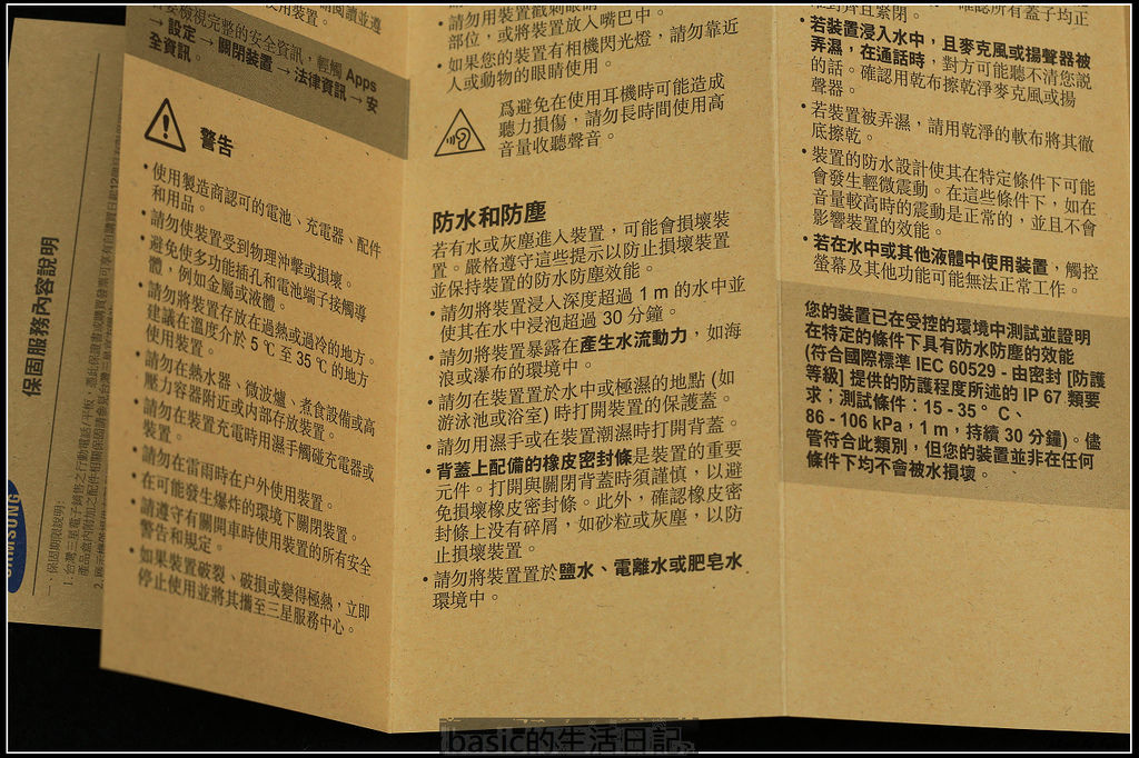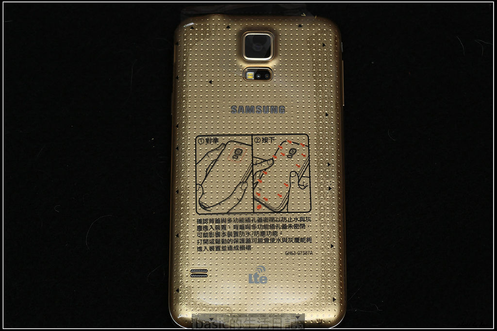 原本背蓋上貼著一些注意事項 , 因為s5有防水的關係 , 也提醒用戶一些注意事項
