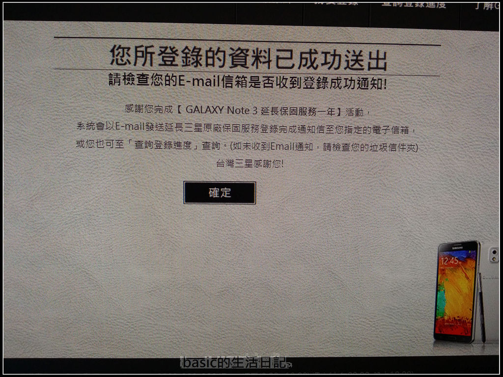 有收到email後就恭喜你 , 你的note3 lte已經有兩年保固了..