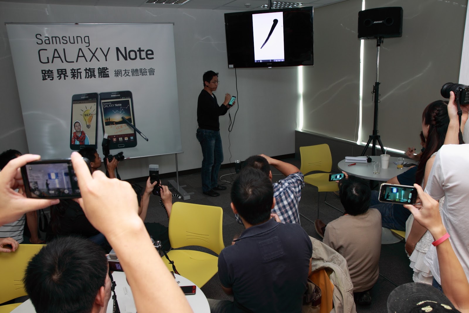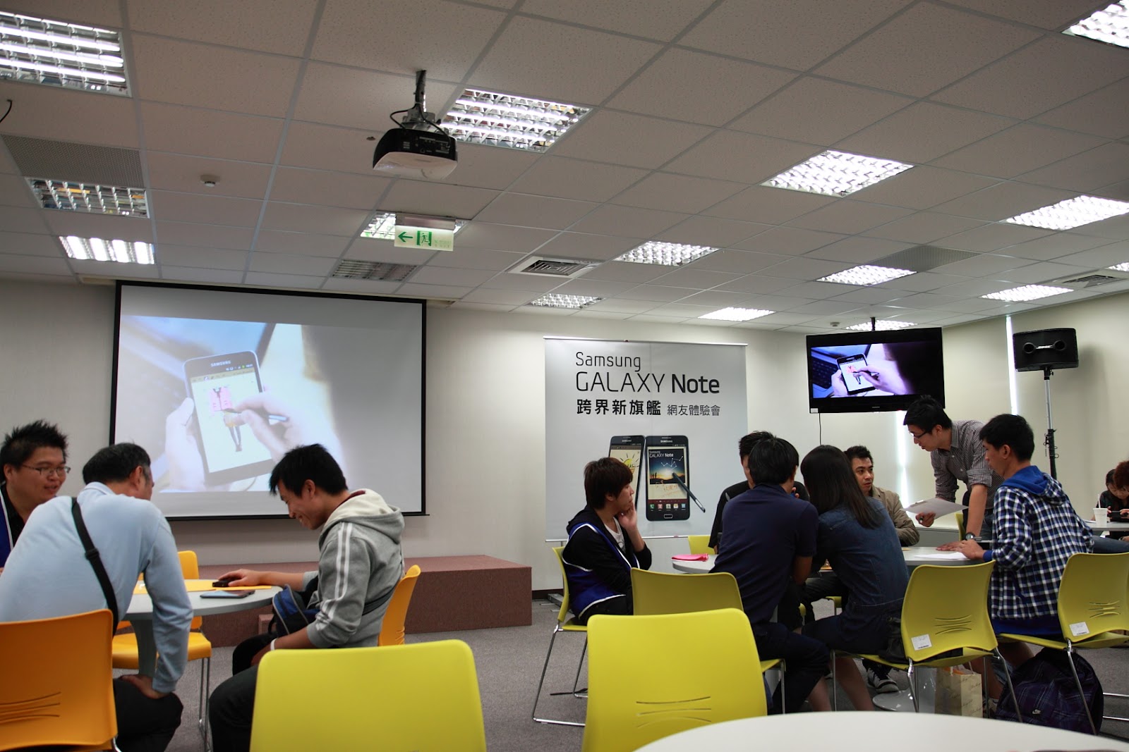 會場的佈置大概就是這樣,一些早到的同志們已經開始埋頭研究了,因為還沒2點早到可以先做體驗那我就先拿起NOTE拍拍照了.....