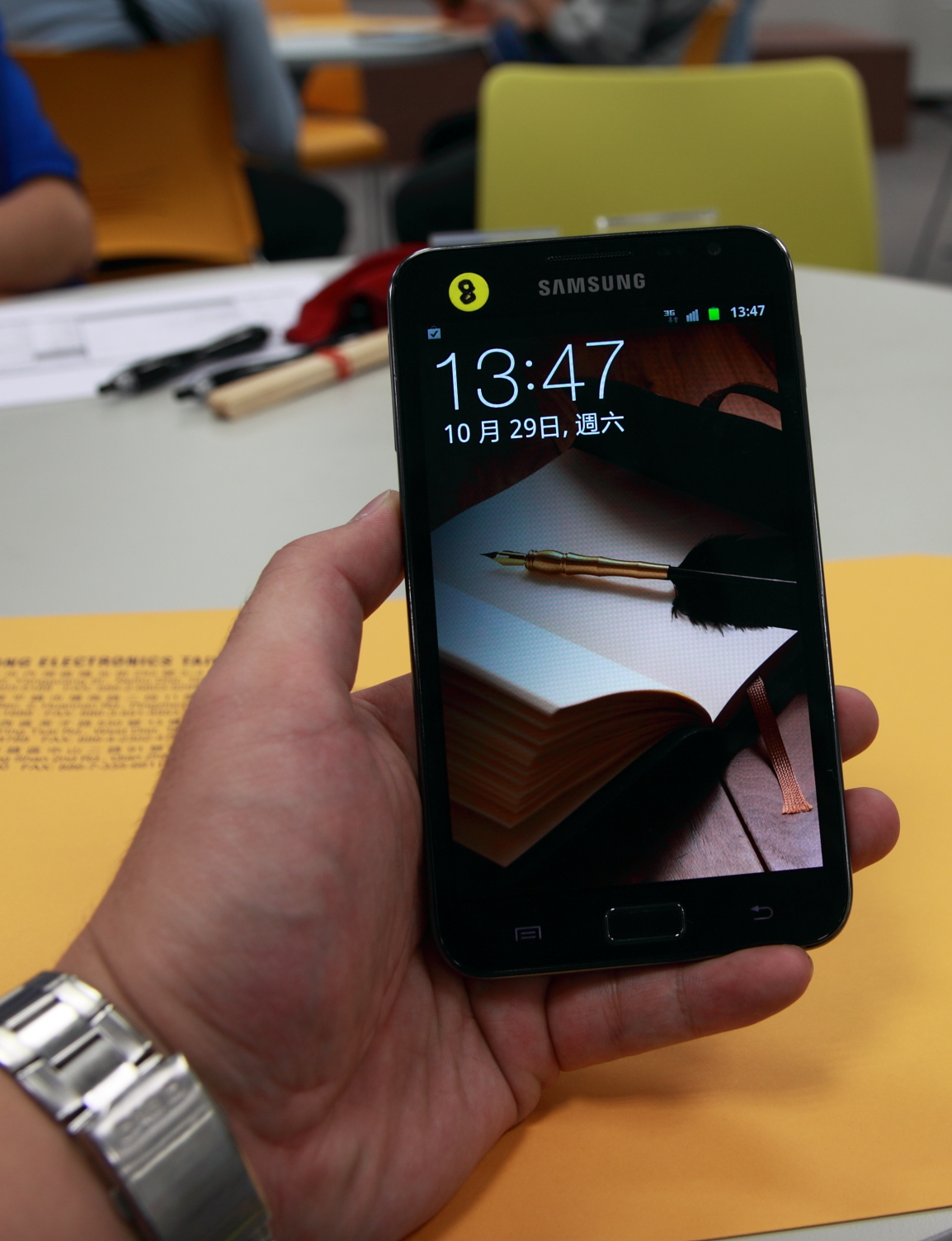 第一眼看到NOTE時最吸引人的還是5.3吋的螢幕,一整就是個大!!!!!,但是拿起來以後又會產生另一個想法怎麼會這麼輕阿!!!這真是太銷魂搂...我的手還不算小拿起來好像不會感覺特別大台。