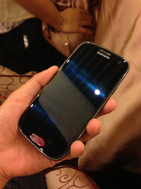 這個週末我跟小齡子去參加她高中同學的婚禮,而我有如往常的把手機放在桌上,卻發現似乎有哪裡不太一樣。原來是會場的光線跟環境,透過我的Galaxy S3 LTE的彎曲螢幕光澤反射出來,讓這隻手機看起來很不一樣。