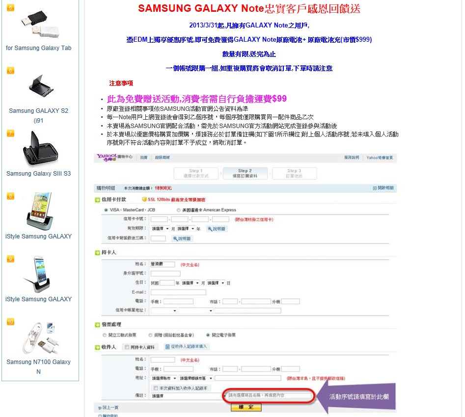 ▼ 賣場網頁有說明(見下圖底下),在放入購物車準備結帳填資料時,在該位置記得填入你Email收到的活動序號即可,剩下的看你要刷卡或ATM轉帳付錢都行