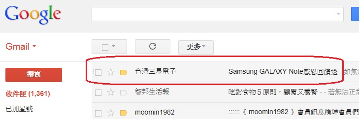 ▼ 只要你曾經在官方網站註冊登入『三星福利社』--> 請點我 ,你就會收到這樣的一封Email