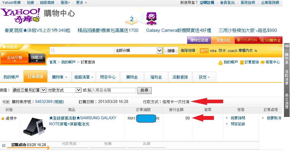 ▼ 我剛剛完成的99元刷卡訂單,如何,很快很簡單吧,馬上省了900元