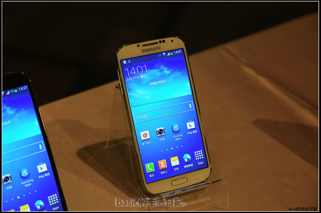 桌面上有好幾支s4一字排開 , 不過現在還不能拿, 近距離看感覺蠻不錯的