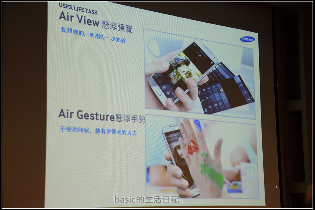 以上都是有別於過往s3的新功能 , 雖然note2也有 air view , 不過這次s4更進化成只要用手就可以 air view , 不需要靠筆才行
