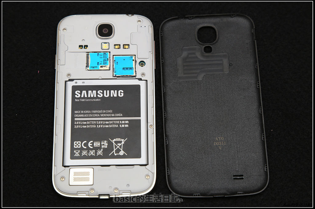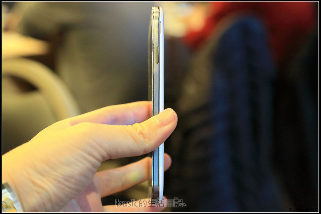 但是剛拿上手時第一個感覺是輕 , 真的蠻輕的 , 第二個感覺是這個邊框做的蠻像金屬質感的(雖然實際上仍是塑膠) , 質感塑造的還不錯 , 而且背蓋上做了網點的設計 , 看起來不像S3那麼的塑膠感 , 在質感上是有加分的..