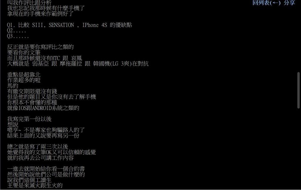 以下某工讀生自問自答,目的是修理對手,卻忘了切換帳號........