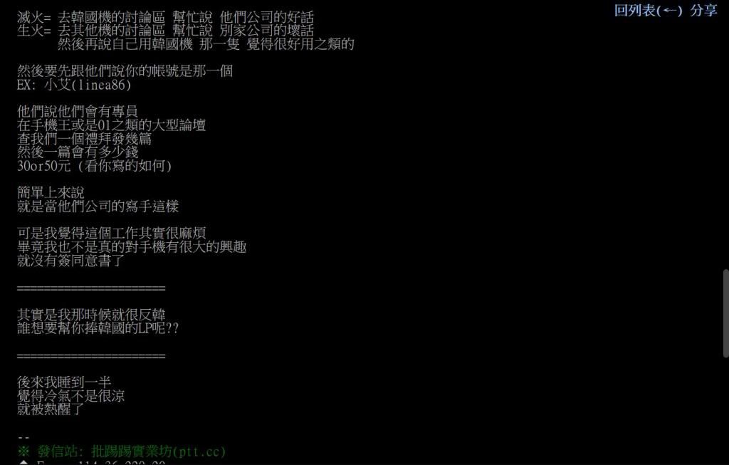 知道今天很多人看到了三星解密所公布的資料,我當然也有看到,講實話我並不想發表太多意見,因為裡面有些是那名公關的個人意見,有些人甚至被講的很不堪。但因為太多人問了,我一直不表態或是一一回覆實在很累,所以我只在這邊公開講一次,之後我就不再回應了。
