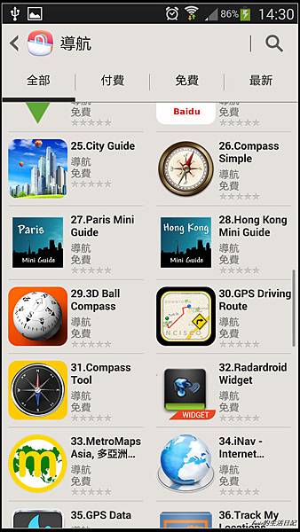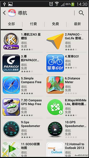 三星機種在Samsung apps中就贈送了導航王 , papago , mio三大導航軟體..