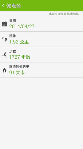 以第一天來說,在S5有在身上時所記錄到的步數,才1767步,而且到歸還手機前所記錄到單日最高步數也不到9000步,看來這部分有很大改善的空間呢!