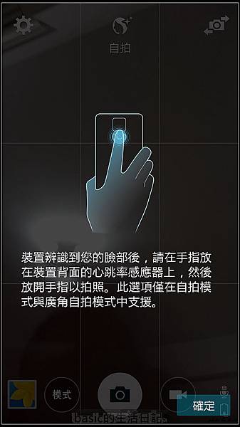 後面的心跳偵測器也可以當做快門 , 讓自拍更容易..
