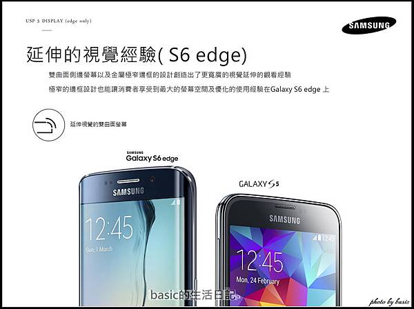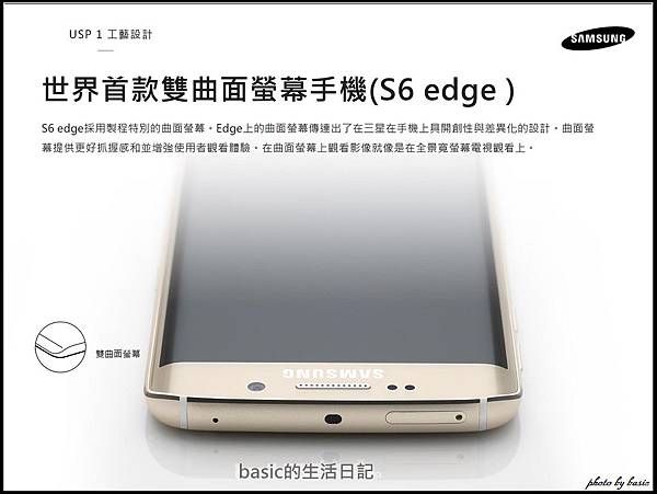 S6 Edge的雙曲面螢幕也具有開創性與差異性的設計 , 與市面上其它手機有明顯的不同..