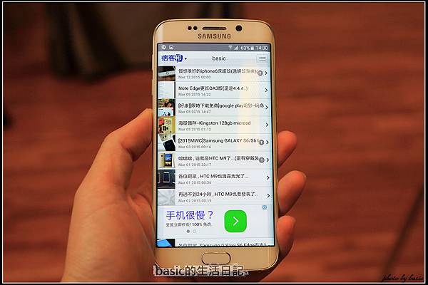 當然要來上個basic的生活日記看看 , 雖然兩側邊是曲面 , 但弧度不像Note Edge那麼大 , 正面觀看影響不大 , 不會覺得側邊有什麼變形的感覺..