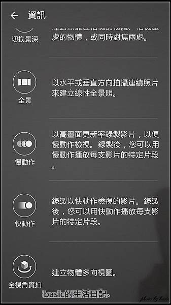 有專業模式 , 切換景深 , 全景 , 慢動作 , 快動作 , 全視角實拍..