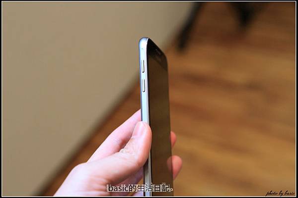 S6的邊框較厚(但整體厚度較薄 , 只有6.8mm) , 為了防滑及增進手感 , 在側邊也設計了凹槽 , 單手握持時的手感能更好..