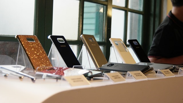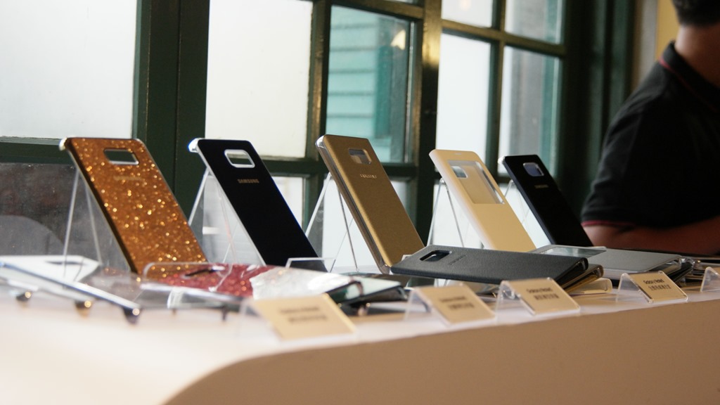 報到進到書店裡面後,就看到適用Galaxy Note 5的薄型透明背蓋、星鑽薄型背蓋、翻頁式皮套、全透視感應皮套、鏡面薄型背蓋、透視感應皮套,總計六款的原廠保護背蓋與皮套。