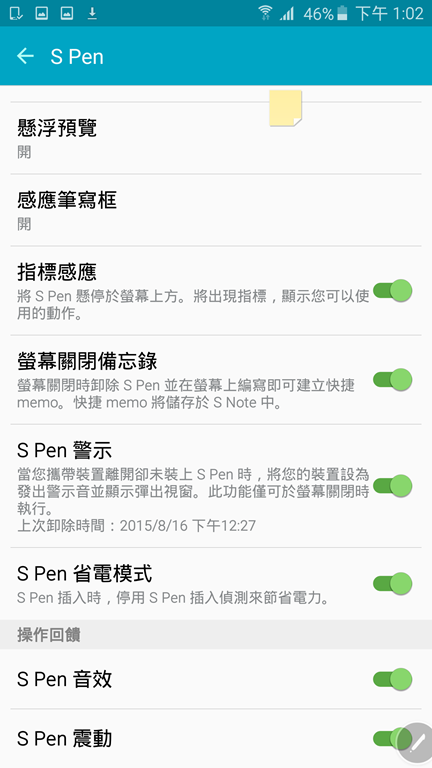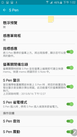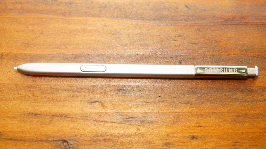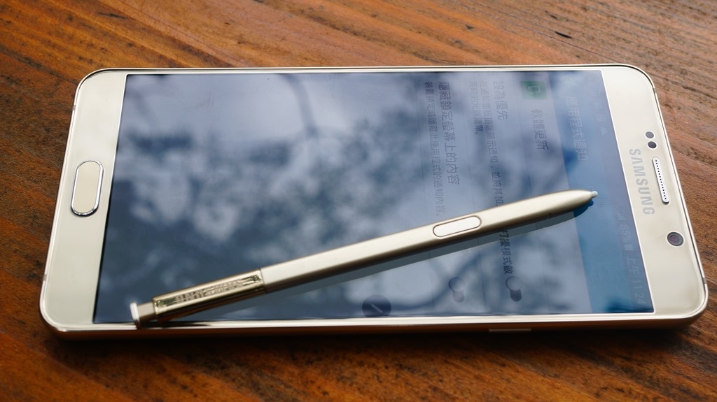 Galaxy Note 5的S Pen也要來看一下。雖然感壓部分沒有增加,但以手上這台琉光金顏色的S Pen來說,現在是使用按壓方式從Galaxy Note 5取出使用,且質感比我目前使用Note Edge的S Pen來得更好!