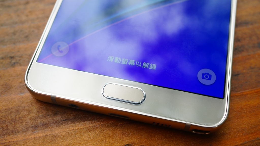 Galaxy Note 5維持有指紋辨識功能的實體Home鍵,以及觸碰使用時才會顯示的返回鍵與多工鍵。