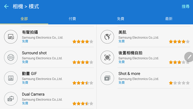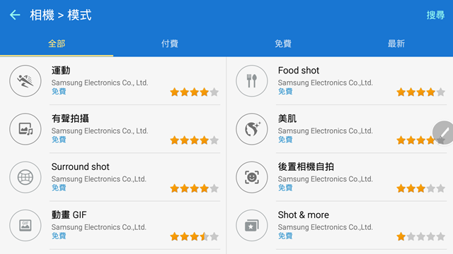 拍照模式部分,除了預設內建模式外,目前還可以下載9種拍照模式進行擴充。