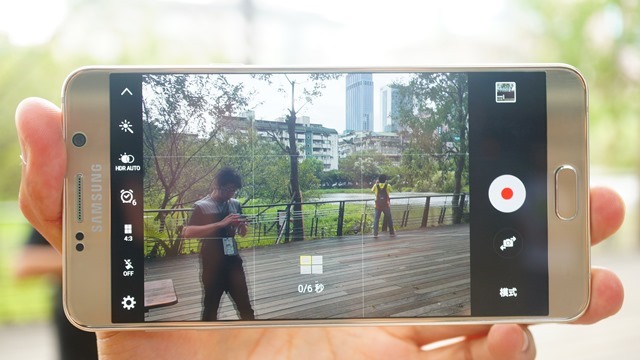 對我自己來說,高階手機我很注重的,且第一個會試的,就是看看它的拍照功能如何?所以,在試玩Galaxy Note 5時,一樣先從拍照功能開始。而Galaxy Note 5的相機主畫面,跟之前體驗的Galaxy S6與Galaxy S6 Edge相同。